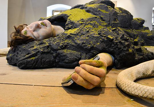 Arise. 2014. Materiaal: diverse synthetische materialen, metaal, hout, textiel, menselijk haar. Afmeting: 175 x 160 x 65 cm.